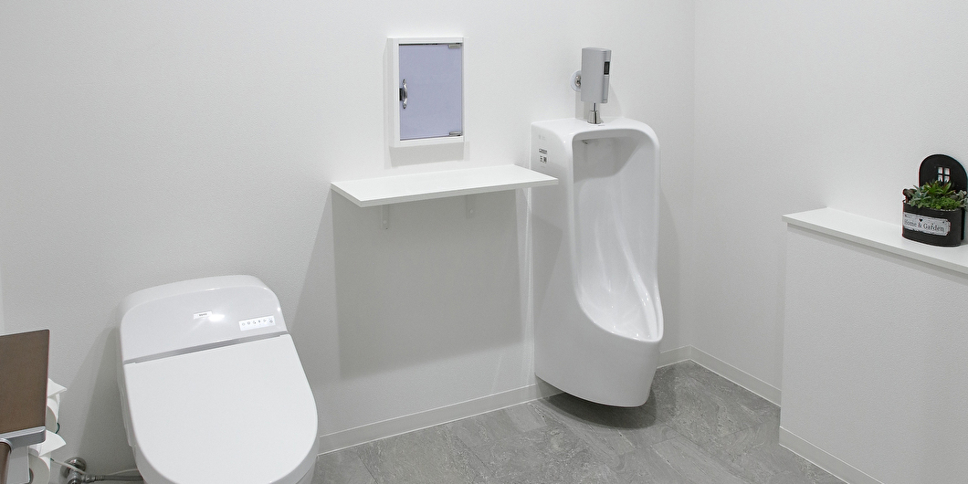広々としたトイレは、常に清潔に保ち、訪れた方に不快な思いをさせないよう気を配っております。
