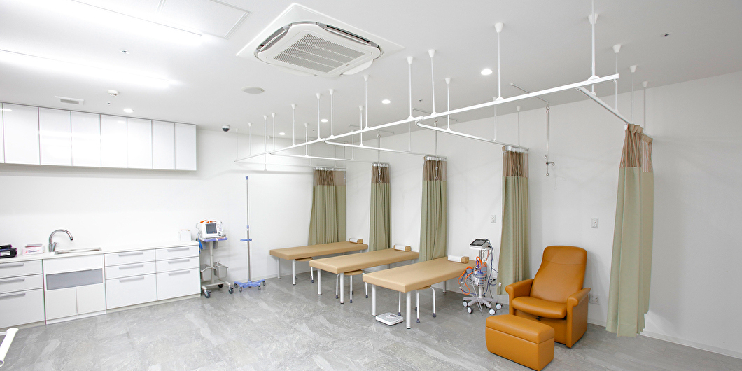 様々な処置・検査をこちらで行います。点滴時などは、周りの視線を間仕切りで遮りますので、ご安心ください。
